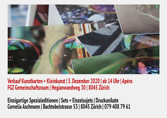 Verkauf Kunstkarten + Kleinkunst | 5.12.2020 | ab 14 Uhr | mit Apéro | FGZ Gemeinschaftsraum Brombeeriweg, Hegianwandweg 30, Zürich