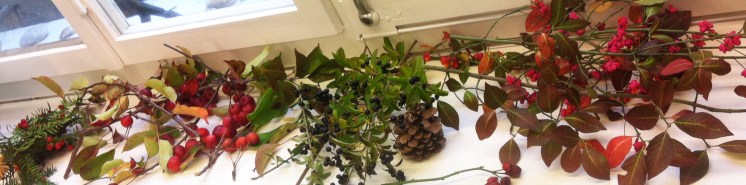 Für Ruth Rasuo und mich hat der Advents-Workshop am 25. November 2017 bereits begonnen. Auf der Suche nach schönen Fruchtständen an Büschen und Bäumen streiften wir durch windverhuddelte Wälder. Fündig geworden sind wir dann aber fast vor der Haustüre. Mit grosser Befriedigung konservierten wir gestern wunderschöne Eibenbeeren, Efeublüten, Kornelkirschen und Hagenbutten in Wachs.